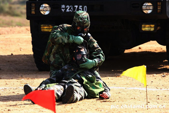 与此同时,这个师还将演练课目嵌入到各专业、各层次训练中来提高部队核化生防护综合应用能力,战炮分队主要进行装备防护、简易洗消和防护状态下的战斗行动训练;侦察、通信、后装等分队主要演练在防护状态下的保障行动;分队主官重点训练对遭敌核化袭击时的观察报知、防护洗消、自救互救等行动的组织指挥,让官兵在“实毒”条件下组织指挥作业,不断摔打各级指挥员在核化生条件下的心理承受能力和遂行任务综合能力。(李勇 杨绵盛 王秦 摄)
