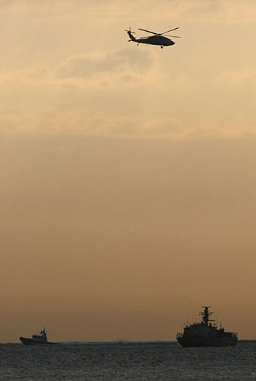 图为以色列海军舰艇在内坦亚附近水域搜索。