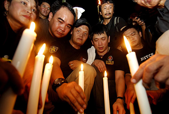 菲律宾全国记者协会的数百名新闻工作者在菲律宾首都马尼拉举行烛光集会,为惨遭杀害的同行伸张正义,同时要求政府不要隐瞒真相。
