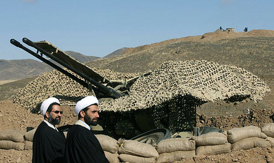 图为伊朗神职人员观看防空演习。