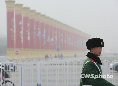 11月25日早9点多,一场大雾将北京城逐渐笼罩起来。随着大雾到来,气温也随之降低。
