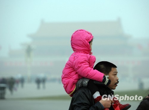 一场大雾将北京城逐渐笼罩起来。中新社发 刘震 摄