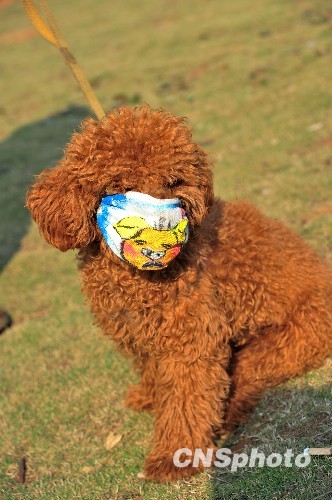 宠物狗戴口罩防甲流。中新社发 杨顺丕 摄