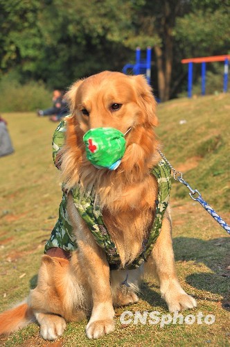图:湖北恩施宠物狗戴口罩防甲流(3)