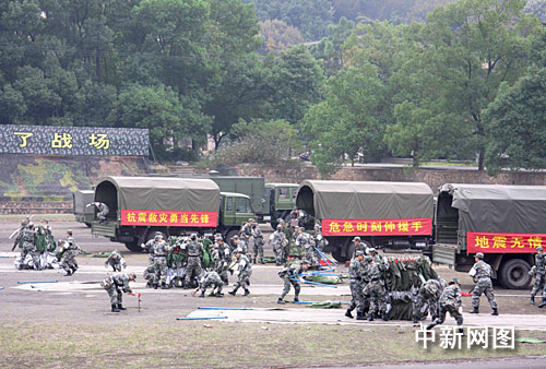 组图:武汉总医院举行非战争军事行动卫勤演练(3)
