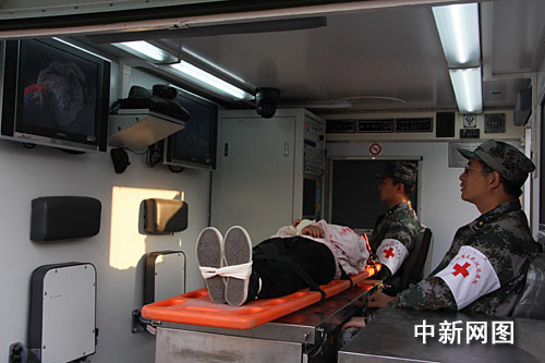 组图:武汉总医院举行非战争军事行动卫勤演练(6)