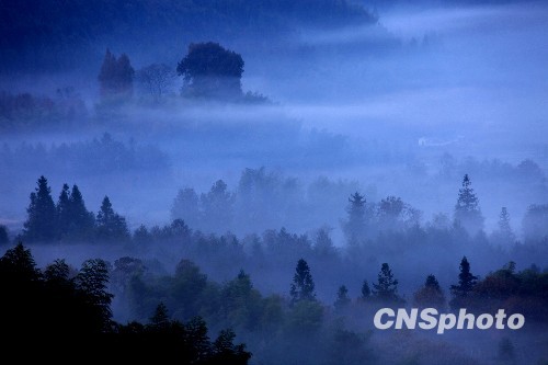 安徽黟县塔川出现罕见大雾 宛如仙境(2)