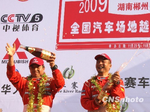 汽油组角逐中,长丰汽车华南虎车队的江惠坚(右)夺得冠军,队友黄凤革获得亚军,该车队获得车队冠军。中新社发 赵振清 摄