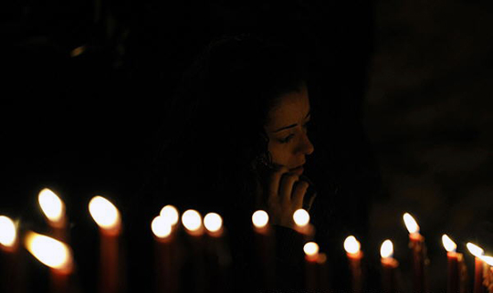 图为11月25日西班牙塞维利亚一名妇女在烛光中参加活动,纪念消除对妇女的暴力国际日。
