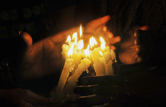 图为11月25日印度昌迪加尔的学生们点燃蜡烛,追悼2008年11月26日孟买恐怖袭击中的遇难者。