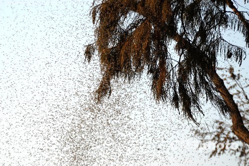 成群的摇蚊在武汉东湖风景区部分湖段飞舞。中新社发 楚天行 摄