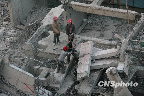 武汉20层违建大楼成功拆除8层。中新社发 楚浩 摄