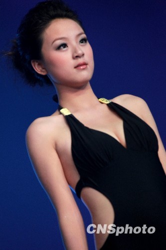 选手在中国华东赛区进行泳装表演。中新社发 方也广德 摄