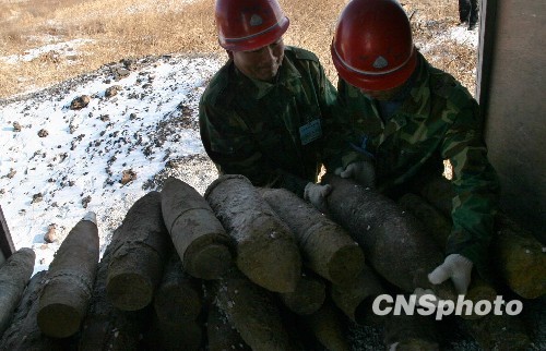 组图:沈阳集中销毁数百枚废旧炮弹(6)
