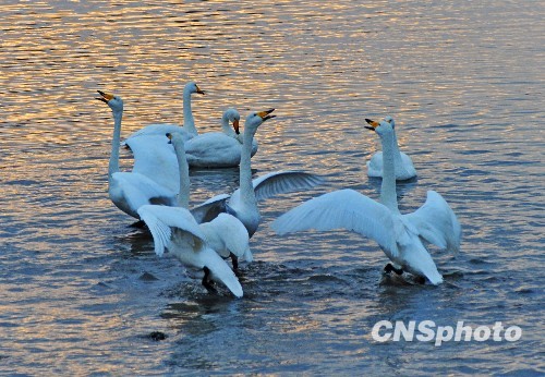 图:天鹅飞临山东威海天鹅湖越冬(3)