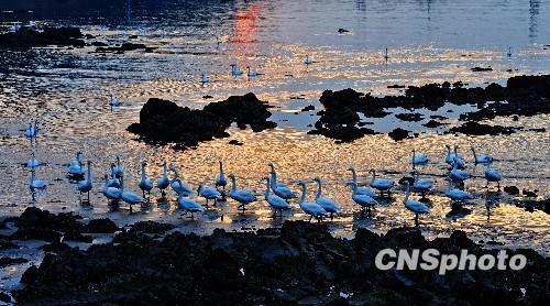 图:天鹅飞临山东威海天鹅湖越冬(4)