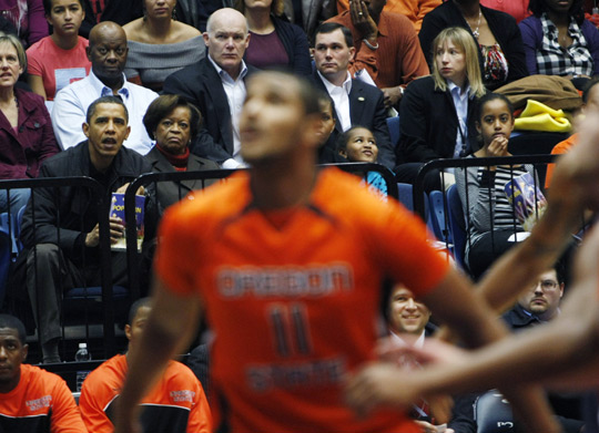 奥巴马“吃零食”观看大学生篮球联赛(2)