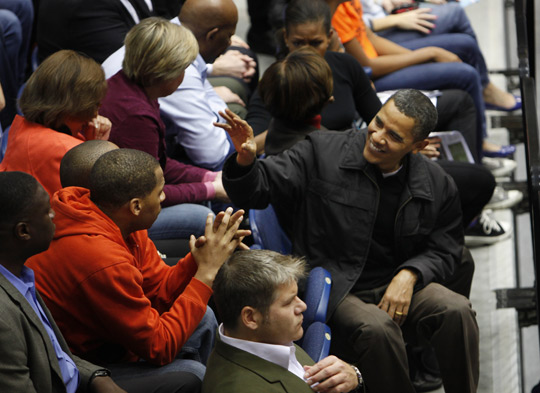 奥巴马“吃零食”观看大学生篮球联赛(4)