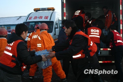11月29日下午,吉林省国家紧急救援救助中心募集的一批救援物资运抵中和煤矿,用于27日发生溃水事故的救援工作。这批物资包括9.52万元的救援专项资金,以及一批多功能专业救援服、棉衣、长靴、食品等。吉林省梅河口市中和煤矿27日下午13点55分发生溃水事故,目前,仍有16名矿工被困井下,现场救援组正在积极研究制定科学的救援方案,对塌陷区的填埋和井下抽水仍在进行。 中新社发 吴兆飞 摄