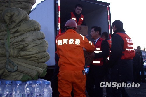 图:吉林煤矿溃水事故救援物资运抵现场(2)