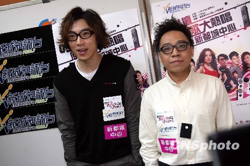 十一月二十九日,香港搞笑歌星组合“农夫”两位成员出席“09乐坛原创歌大热唱”活动,接受记者采访并分享今年的工作成绩。中新社发 洪少葵 摄