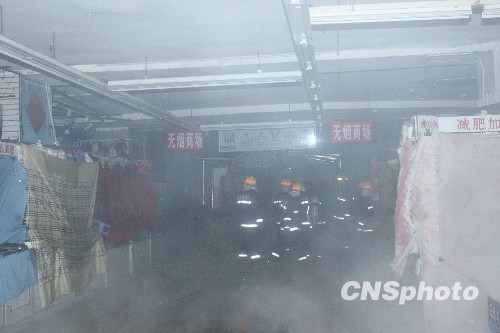 哈尔滨大世界商城突发大火,消防队员进行救援。中新社发 靖阳 摄