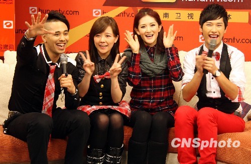 11月30日,谢娜新节目《百科全说》在湖南卫视开播。这是一档生活智慧类脱口秀节目,每期将邀请生活方面的专家讲述健康生活理念。当晚,谢娜带领唐笑、朱梓骁和外籍主持麦小龙一起做客某网络在线聊天,为新节目宣传造势。中新社发 邓霞 摄