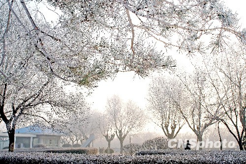 辽宁省锦州市迎来入冬后第一场雾凇。中新社发 谷进 摄