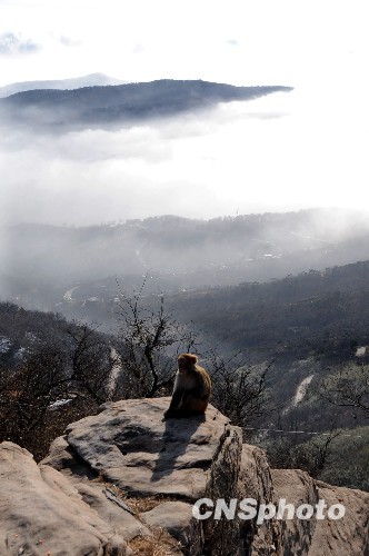 连云港花果山冬日出现云海美景。中新社发 王春 摄