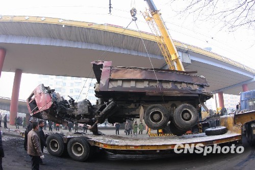 12月1日凌晨,哈尔滨市二环桥电机厂门前,一辆翻斗货车翻下桥,车体散架,司机受伤被送往医院救治。幸运的是,货车落地时,地面没有车辆和行人。目前事故原因还在调查中。
