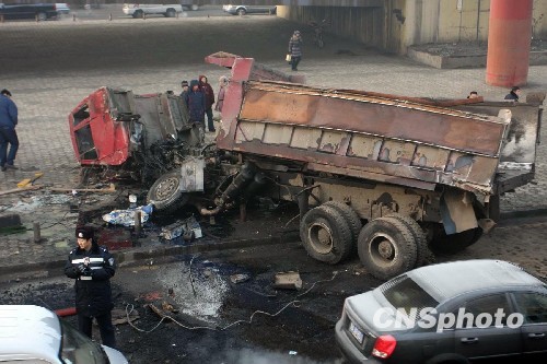 图:翻斗货车哈尔滨桥上玩“生死时速”(2)
