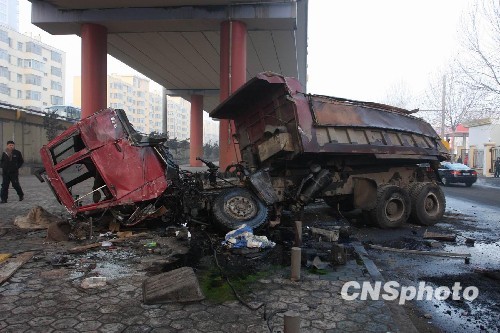 图:翻斗货车哈尔滨桥上玩“生死时速”(3)