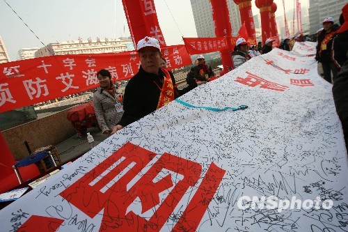 河南省万人签名宣传防范艾滋。中新社发 王中举 摄