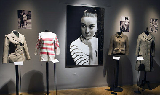 图为影星奥黛丽·赫本穿过的衣服在法国巴黎公开展示。