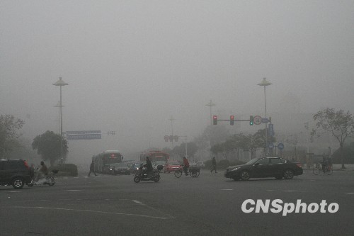 江苏发布大雾黄色预警信号 大雾笼罩扬州(2)