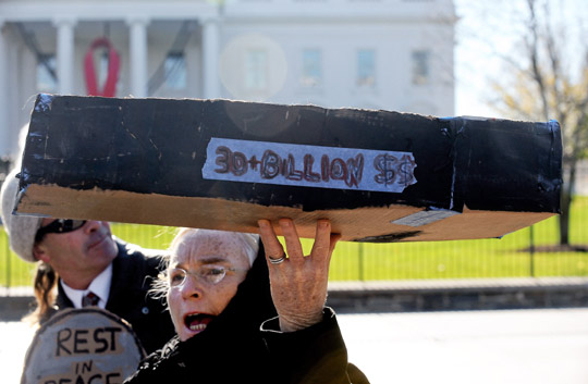 12月1日,美国反战人士在华盛顿白宫附近举行示威,反对向阿富汗增兵。