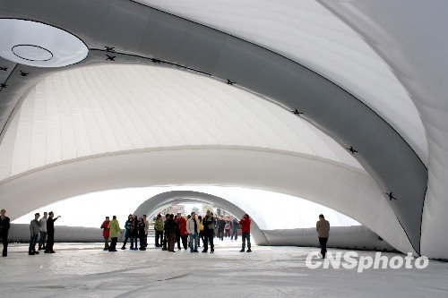 人们在参观超级充气帐篷充气。中新社发 王国红 摄
