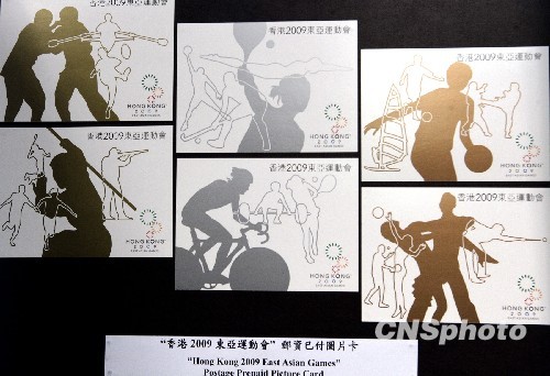图为“香港2009东亚运动会”邮资已付图片卡。中新社发 张勤 摄