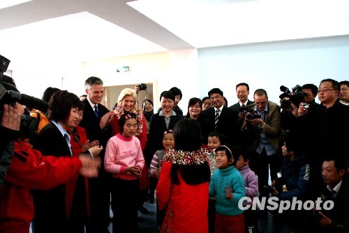 图为杨乐意和洪博培大使夫妇带着感恩的心在扬州市委书记王燕文等陪同下走进福利院,看望那里的小朋友。中新社发 崔佳明 摄