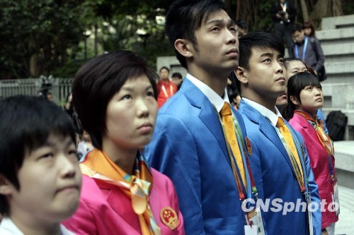 东亚运在香港公园举行升旗礼。中新社发 张勤 摄