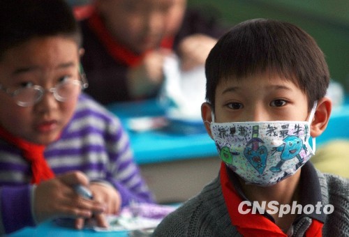 乌鲁木齐小学生手绘“个性口罩”预防甲流。中新社发 刘新 摄