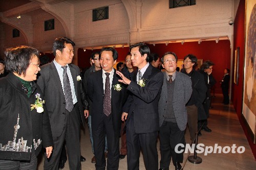 《何家英画展》在上海美术馆开幕,文化部副部长王文章(中)出席。中新社发 王保胜 摄