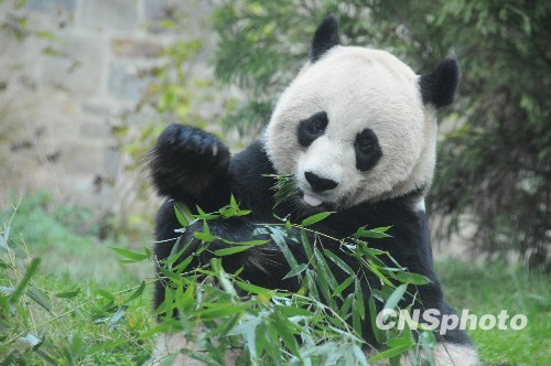 图为四日上午泰山正在吃“早餐”。中新社发 吴庆才 摄