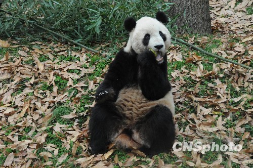 图为四日上午泰山正在吃“早餐”。中新社发 吴庆才 摄