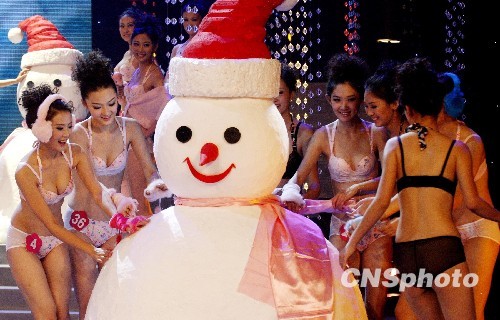 图为参赛模特选手进行内衣展示。中新社发 钱兴强 摄