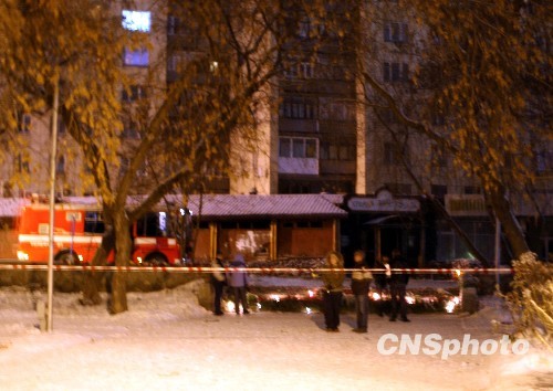 在被大火燃烧后的比尔姆市一家夜总会门前空地上,仍有不少年轻人络绎不绝赶来,点燃蜡烛,献上鲜花,寄托对亲朋的哀思。中新社发 田冰 摄