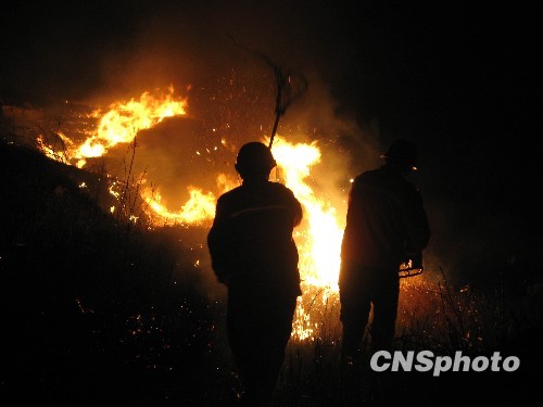 浙江温岭小岭头山数百亩山地突发大火(3)