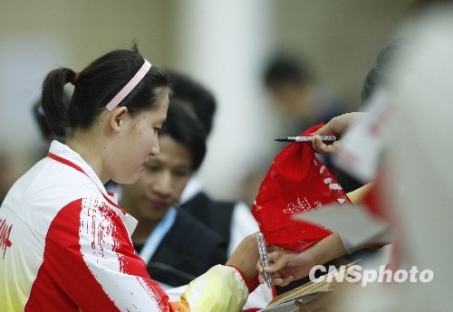 图为刘子歌在比赛后为观众签名。中新社发 盛佳鹏 摄