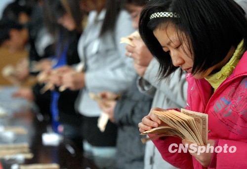 为了让在校大学生充分认识拥有职业技能的重要性,12月5日,辽宁省锦州市渤海大学与锦州银行金凌支行联合举办首届校园点钞大赛,百余名大学生同台竞技,充分调动了学生学习技能的积极性。中新社发 谷进 摄