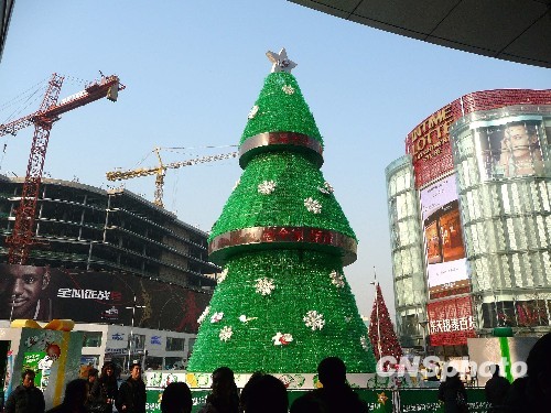 图:15米巨型环保圣诞树亮相北京王府井(2)